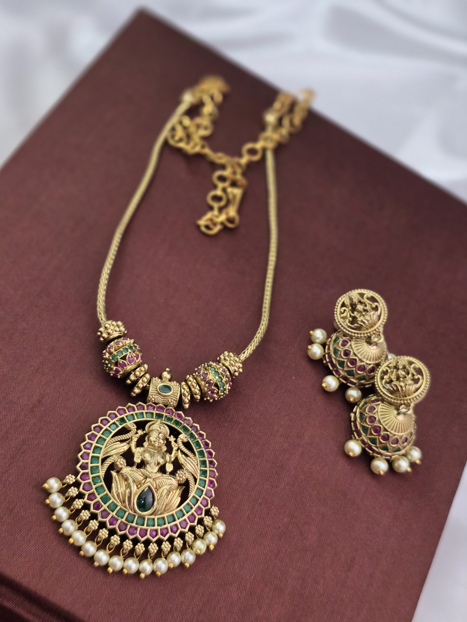 PACKAGE CONTENT – Premium ad ruby emerald matt nagas necklace comes jhumka