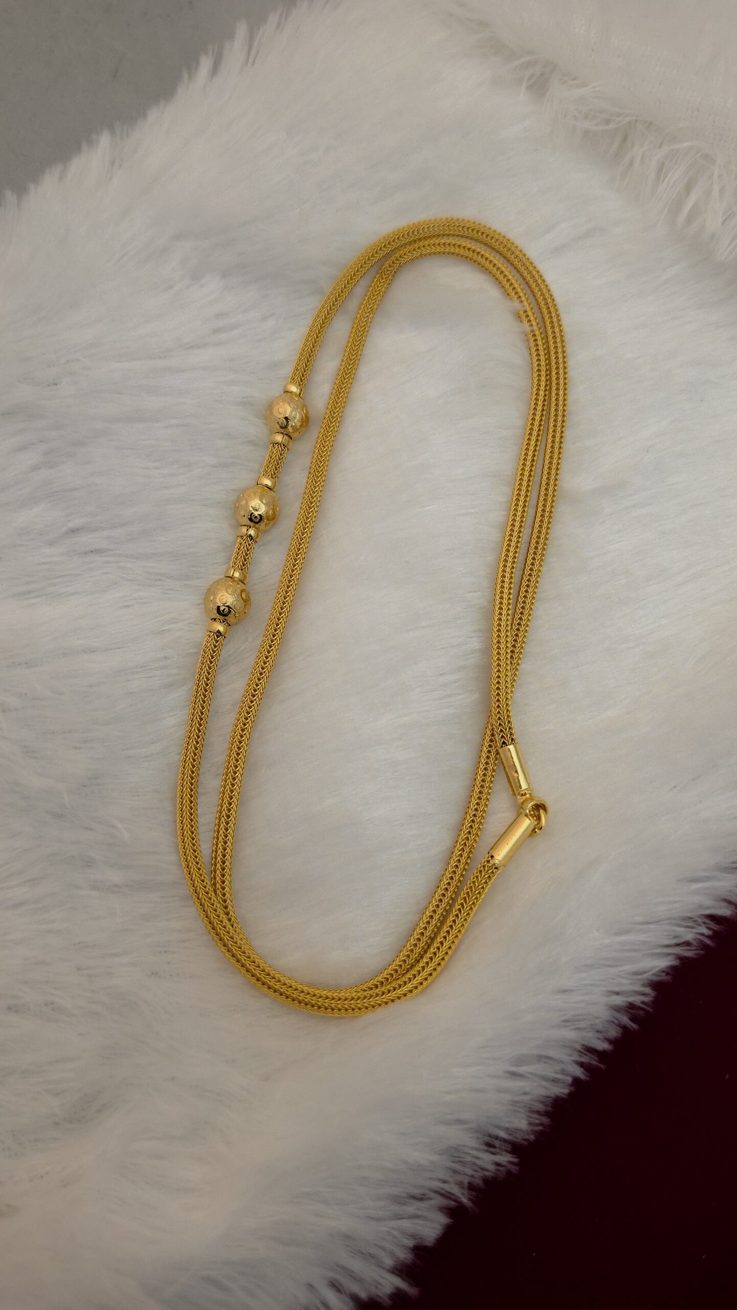 PACKAGE CONTENT –  Premium foaming 3 ball 30 inches mugappu chain comes realgold tone