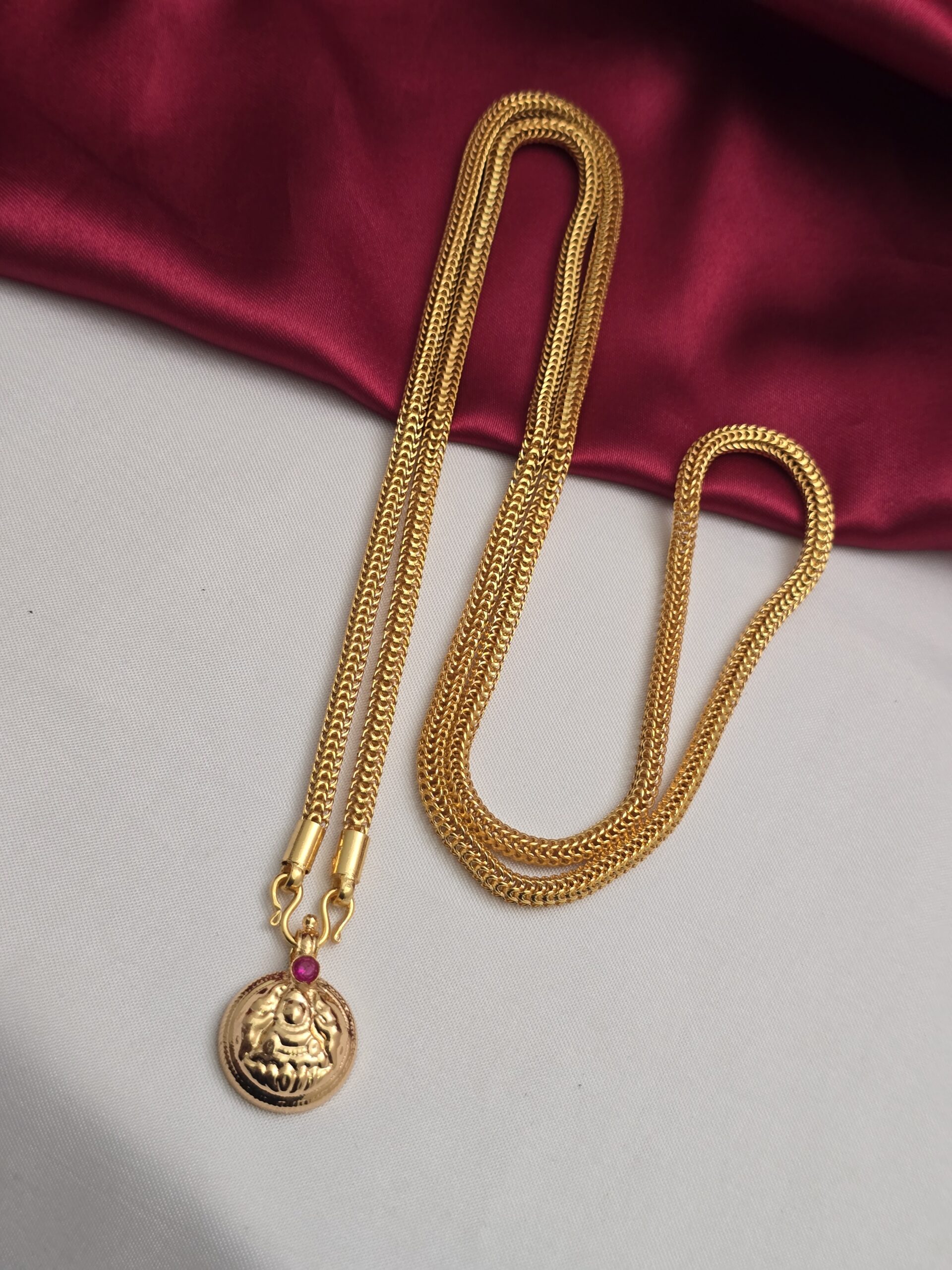 PACKAGE CONTENT –  Premium foaming 32 inches ruby lakshmi dollar chain