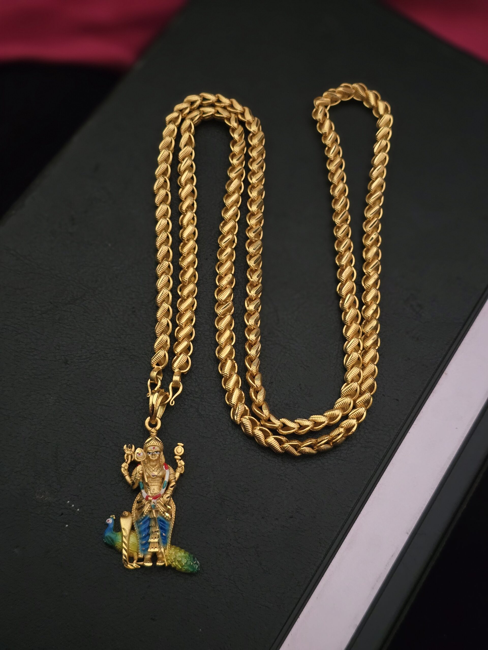 PACKAGE CONTENT – Premium foaming 32 inches vel mayil enamel dollar chain comes lotus chain
