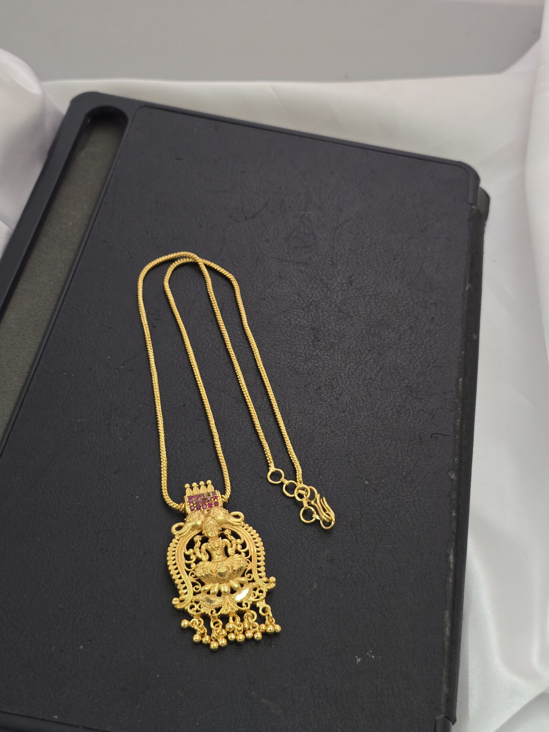 Premium foaming AD ruby stone lakshmi necklace