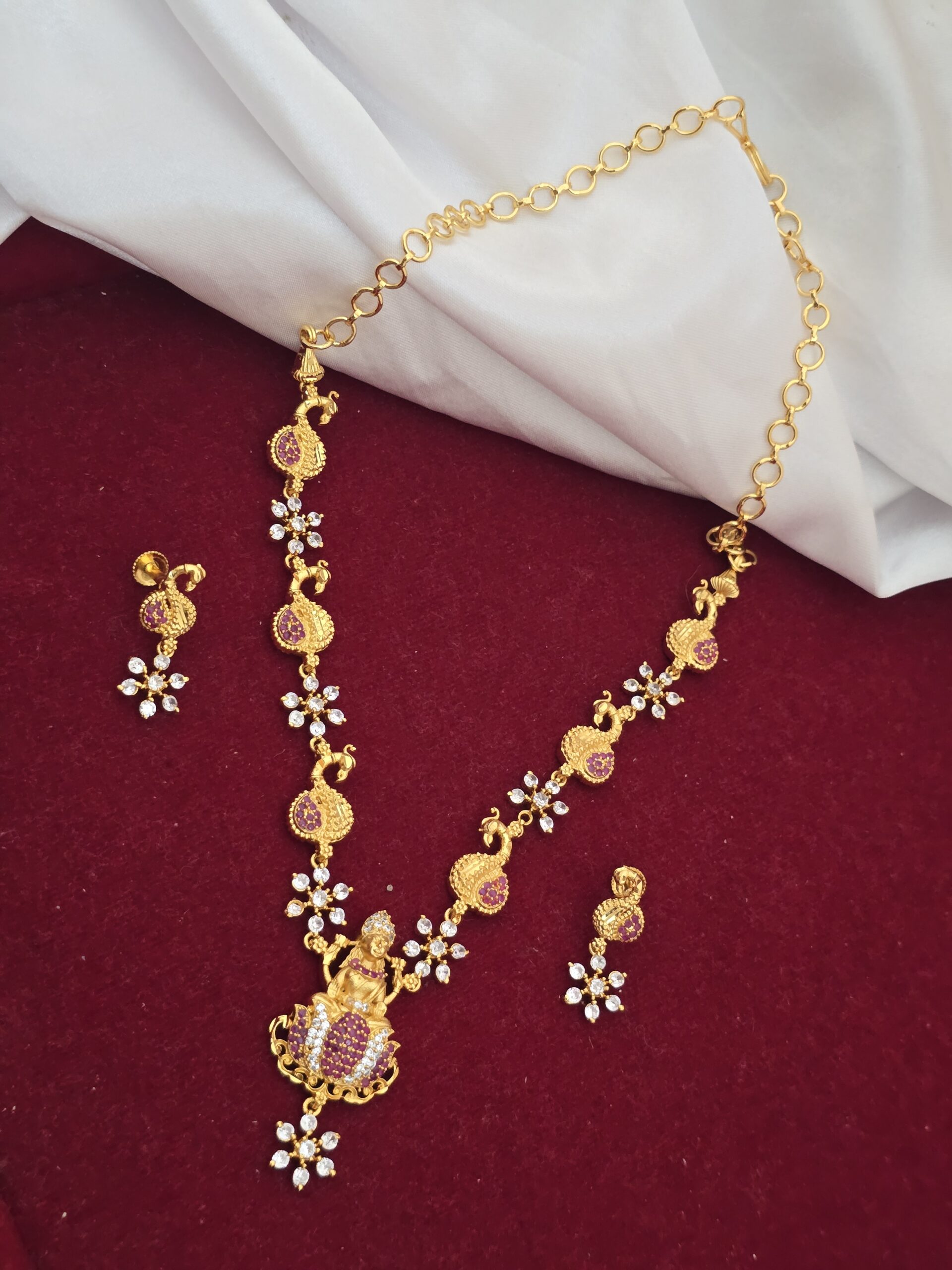Be the first to review “Premium foaming ad stone lakshmi necklace with earings”