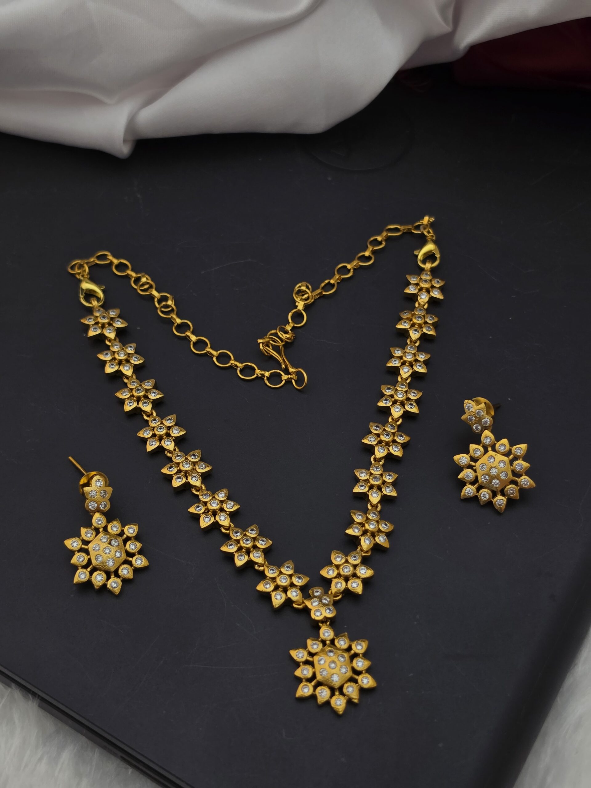 PACKAGE CONTENT – Premium foaming diamond replica necklace with earings