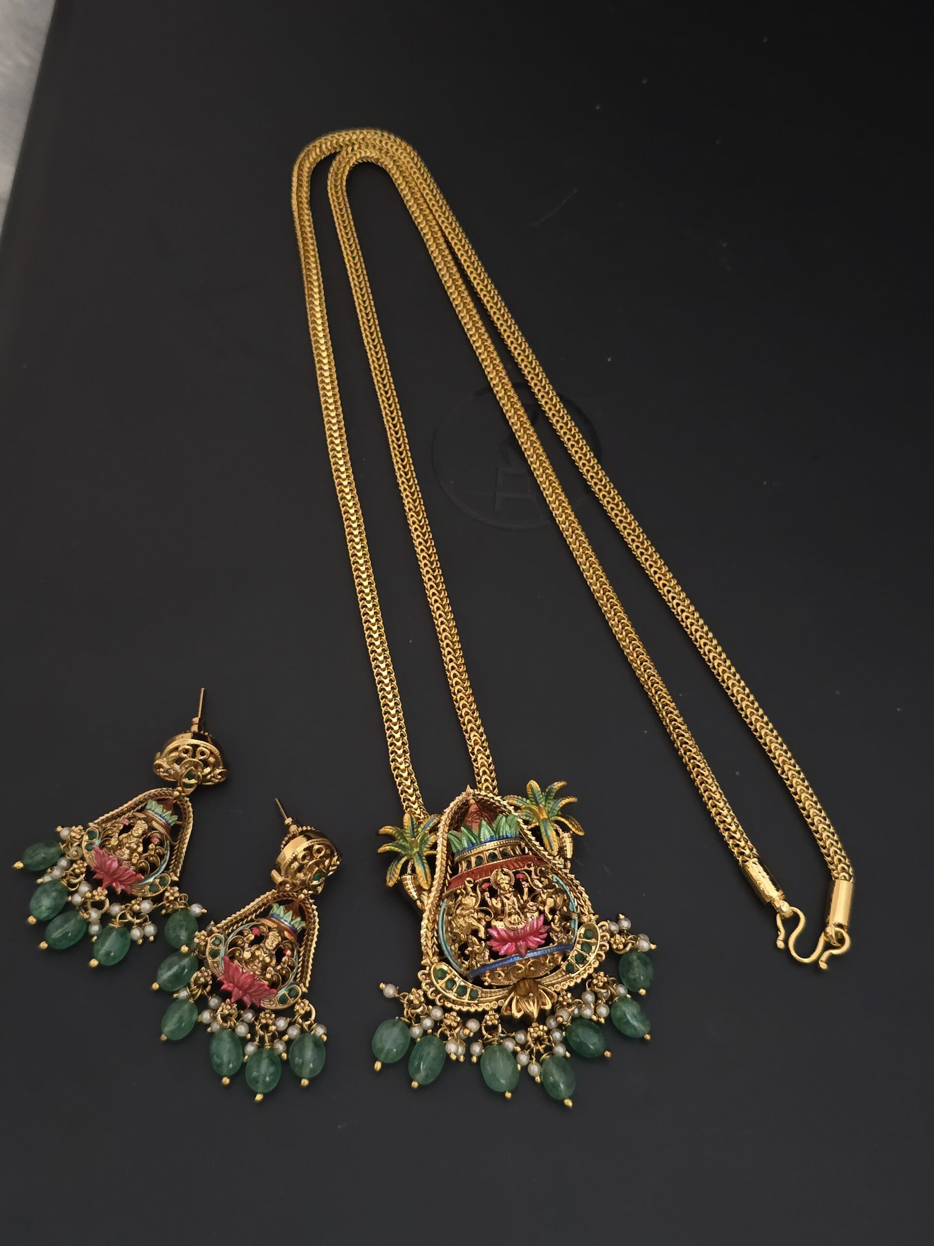 PACKAGE CONTENT – Premium foaming meenakari dollar chain with mandapam pattern