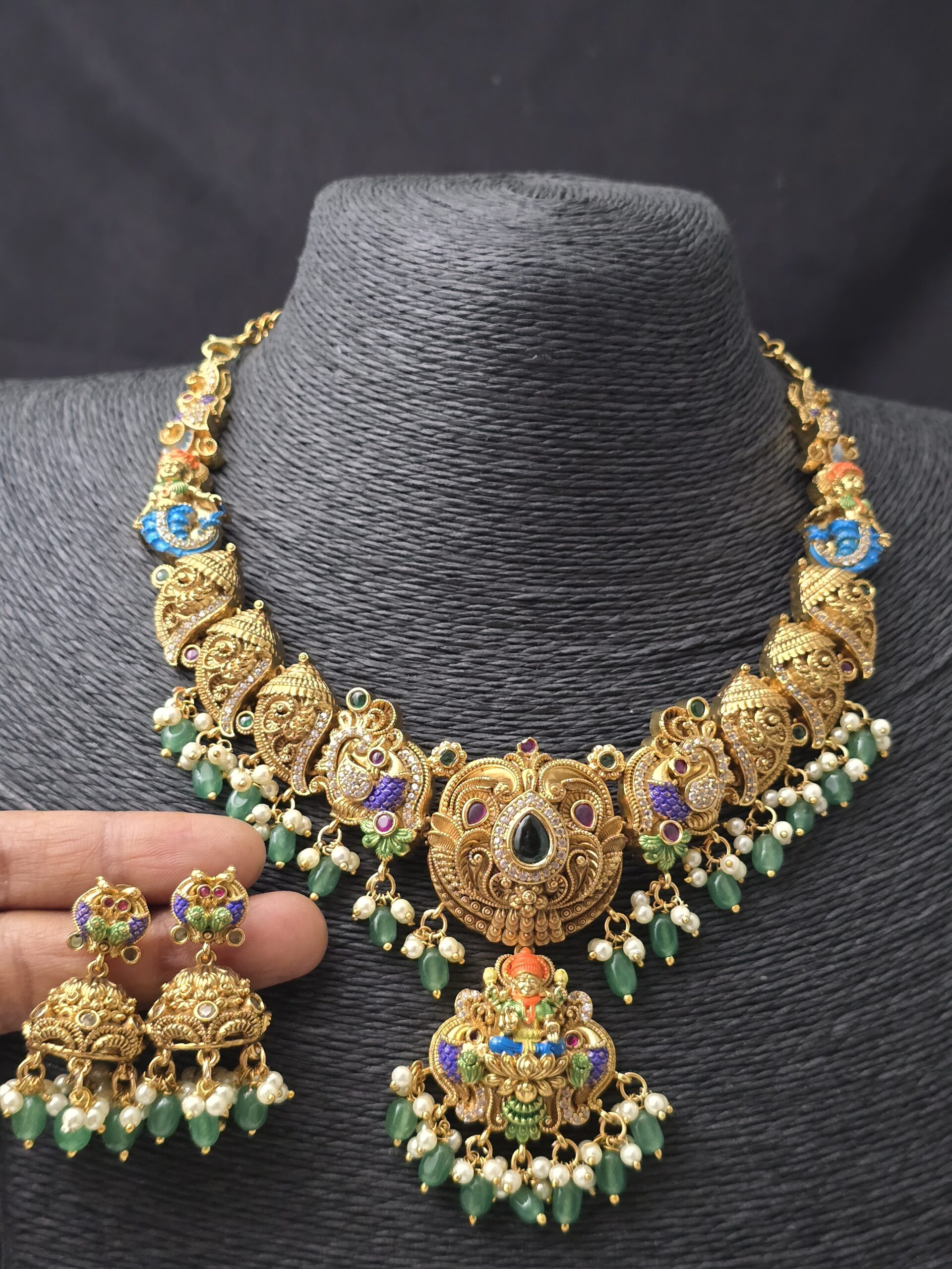 PACKAGE CONTENT – Premium foaming meenakari lakshmi necklace mandapam pattern