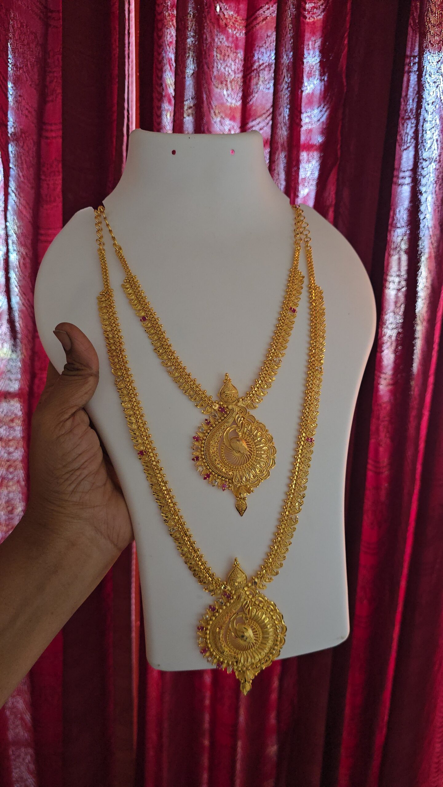 PACKAGE CONTENT – Premium foaming PEACOCK ad ruby white combo comes necklace haram