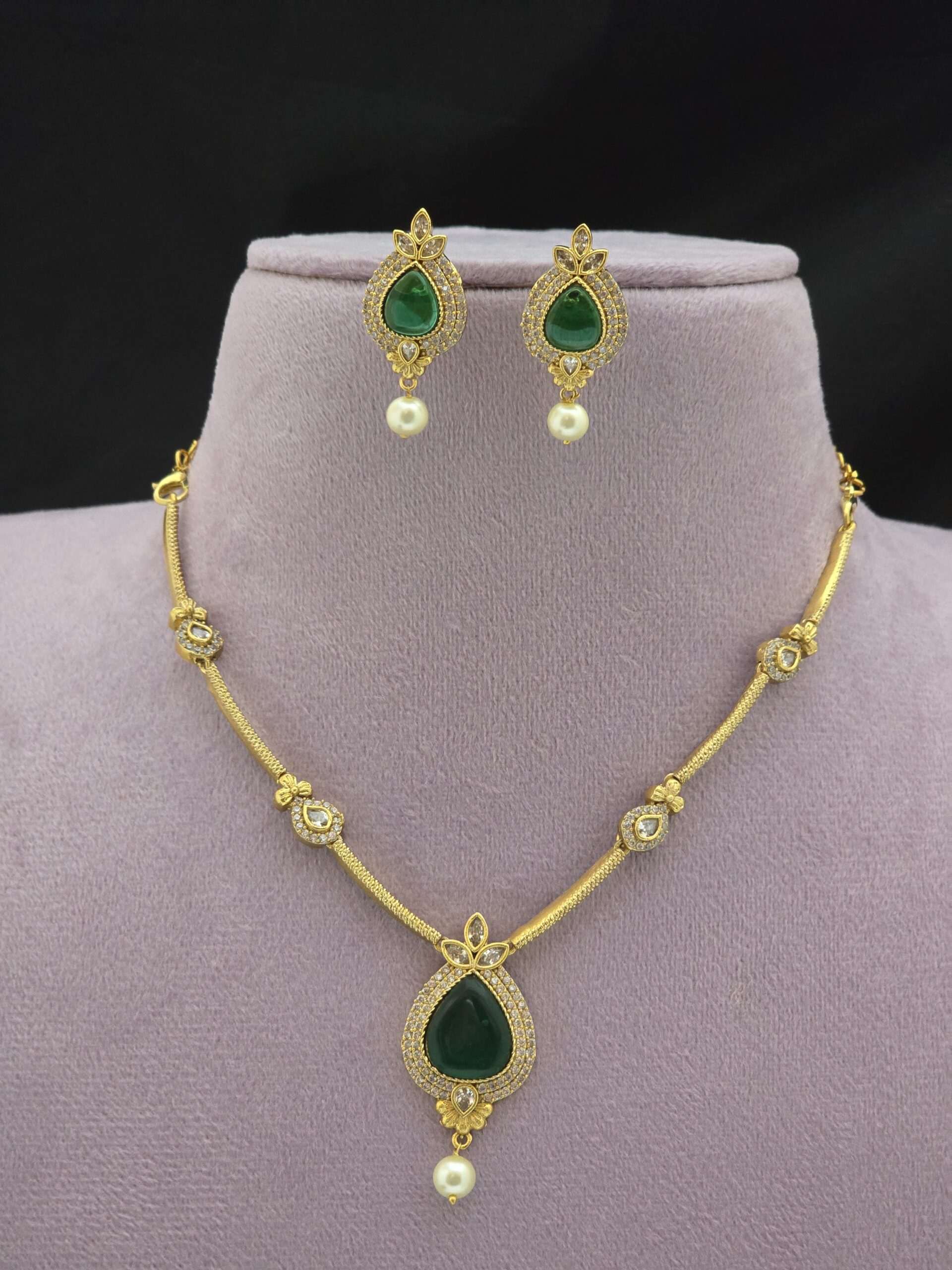 Premium foaming pearl palak necklace
