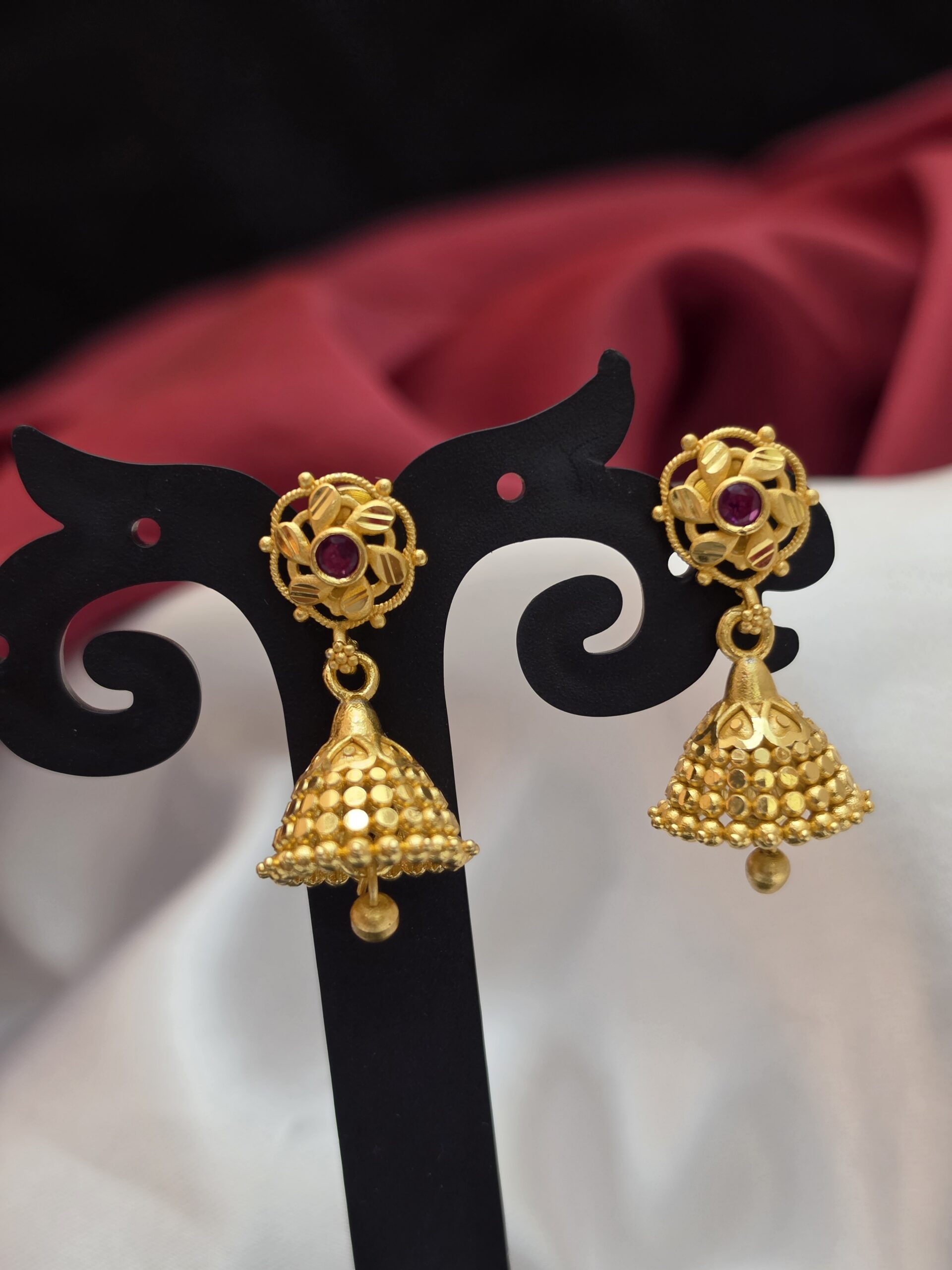 Premium foaming ruby stone jhumka