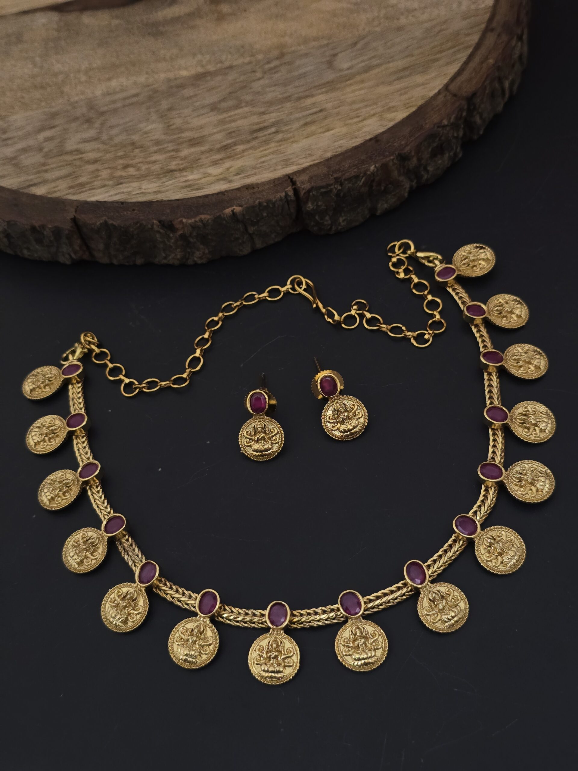 PACKAGE CONTENT- Premium foaming ruby stone lakshmi necklace