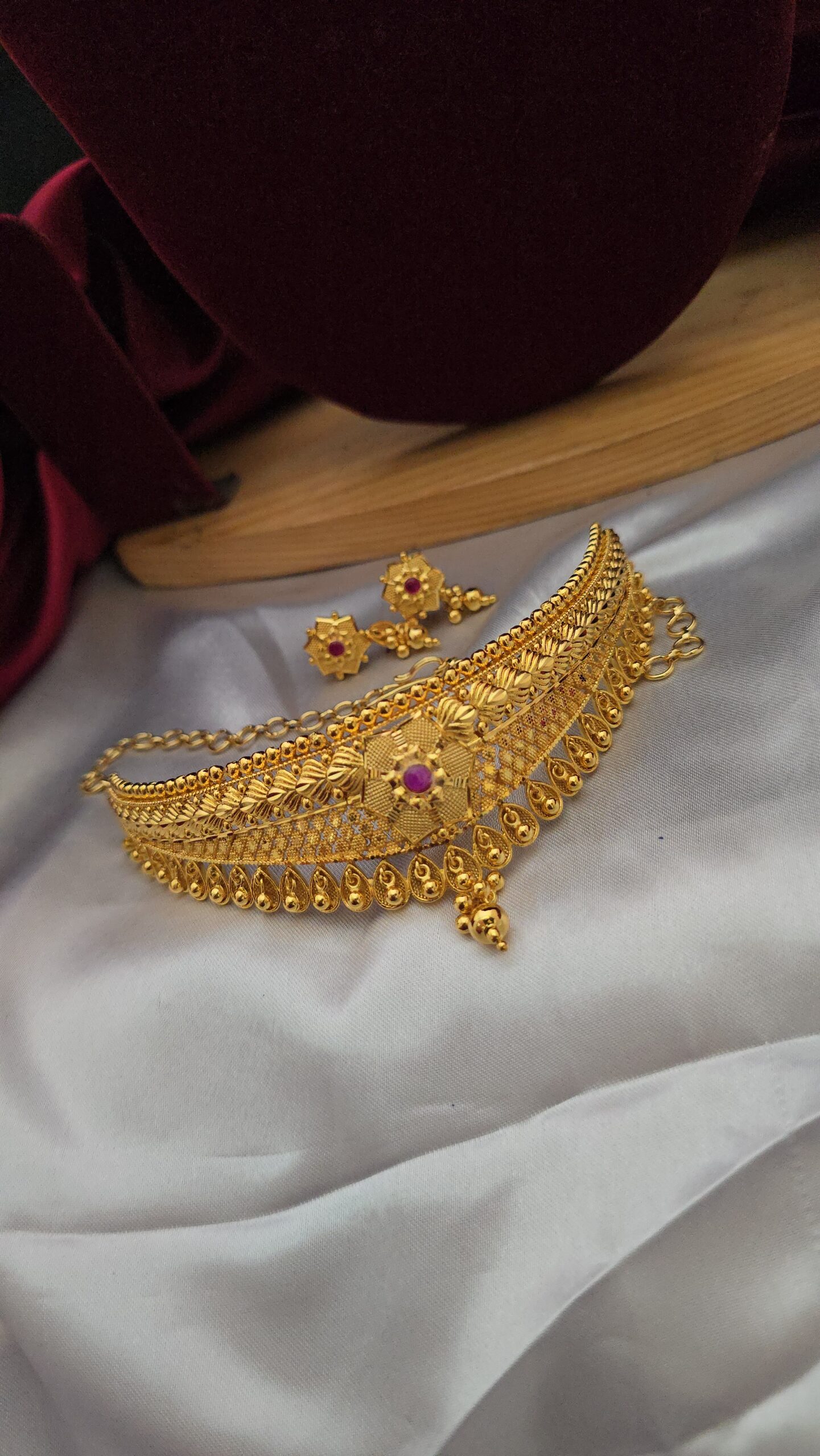 Premium foaming ruby wedding choker with earing