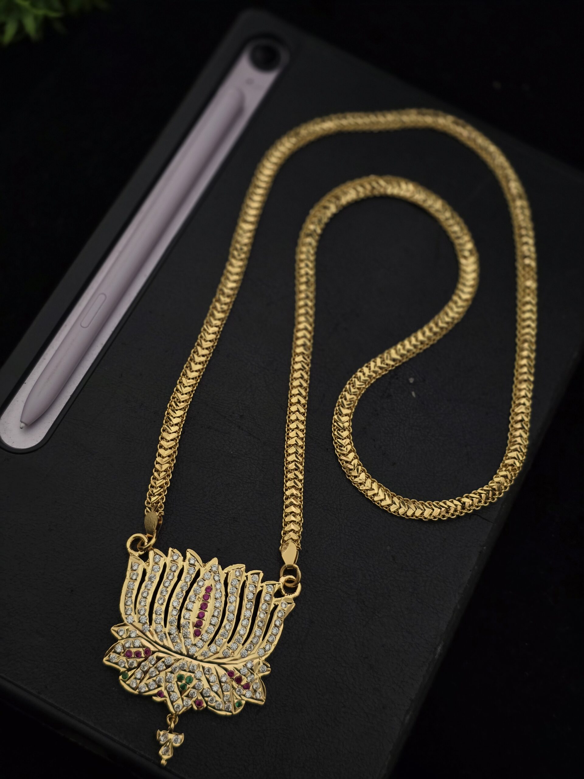 PACKAGE CONTENT – Premium Impon lotus 32 inches dollar chain comes heart chain