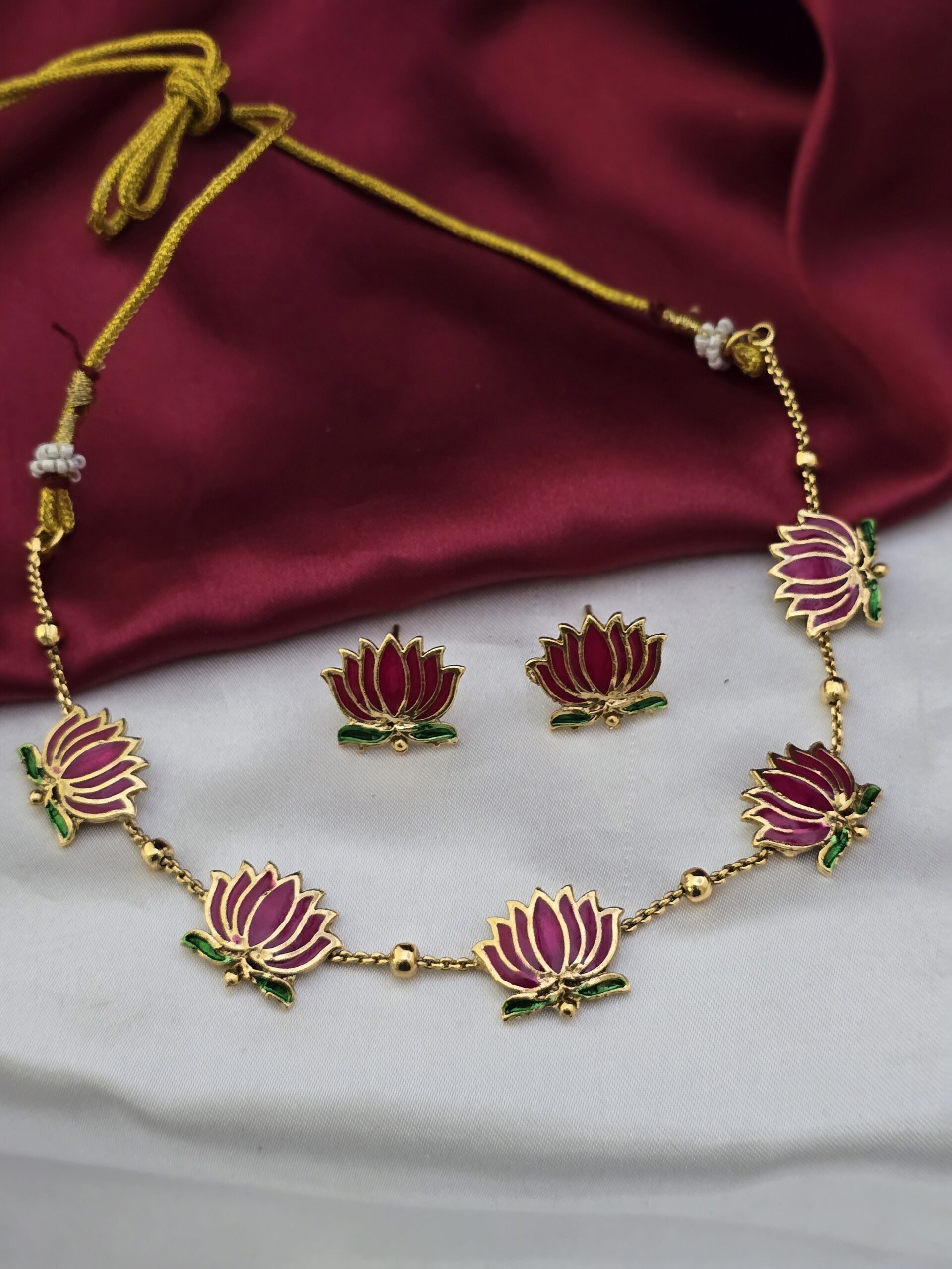 Be the first to review “Premium jadau lotus necklace”