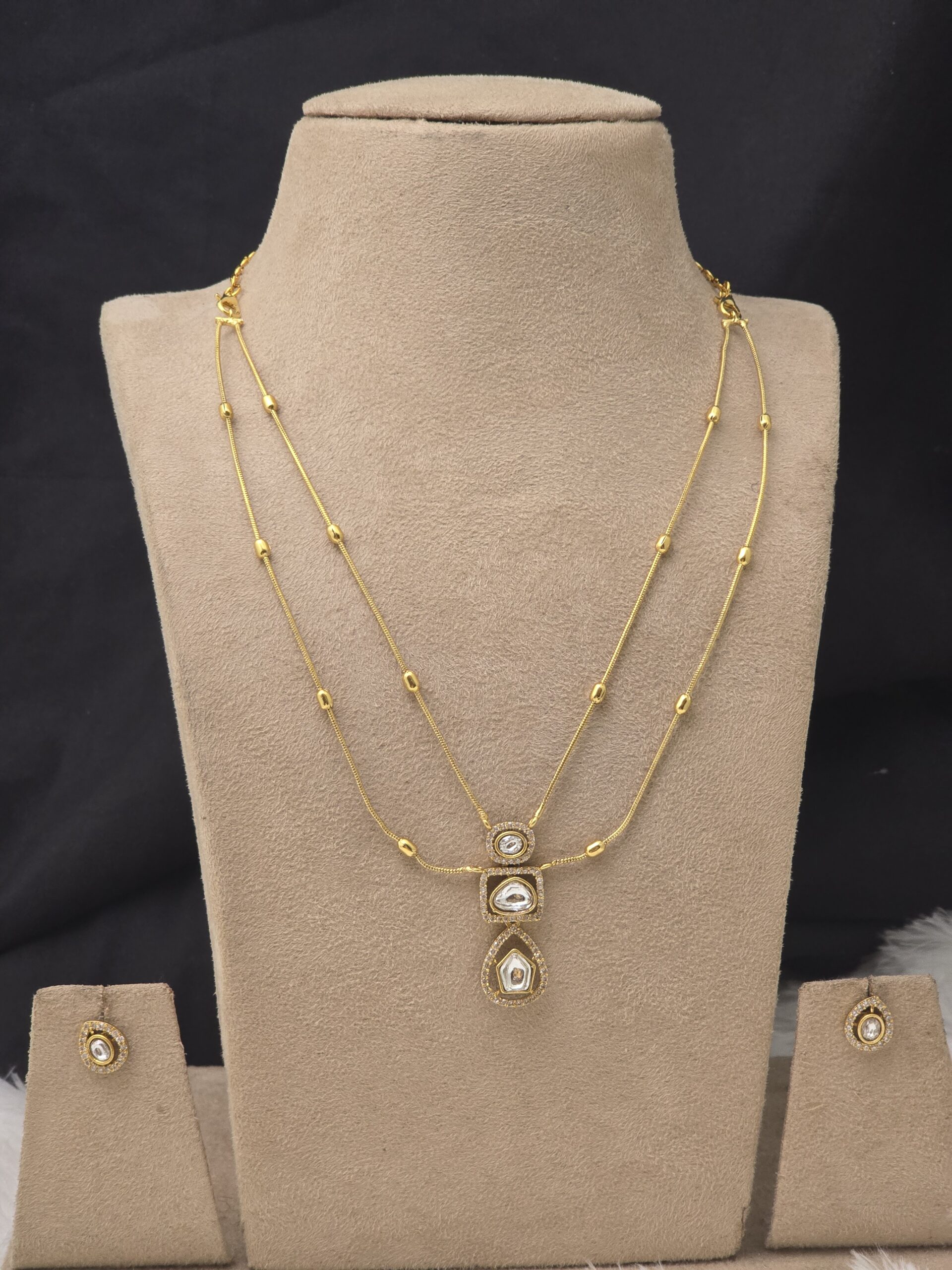PACKAGE CONTENT- Premium mat 2 layer AD stone necklace with stud