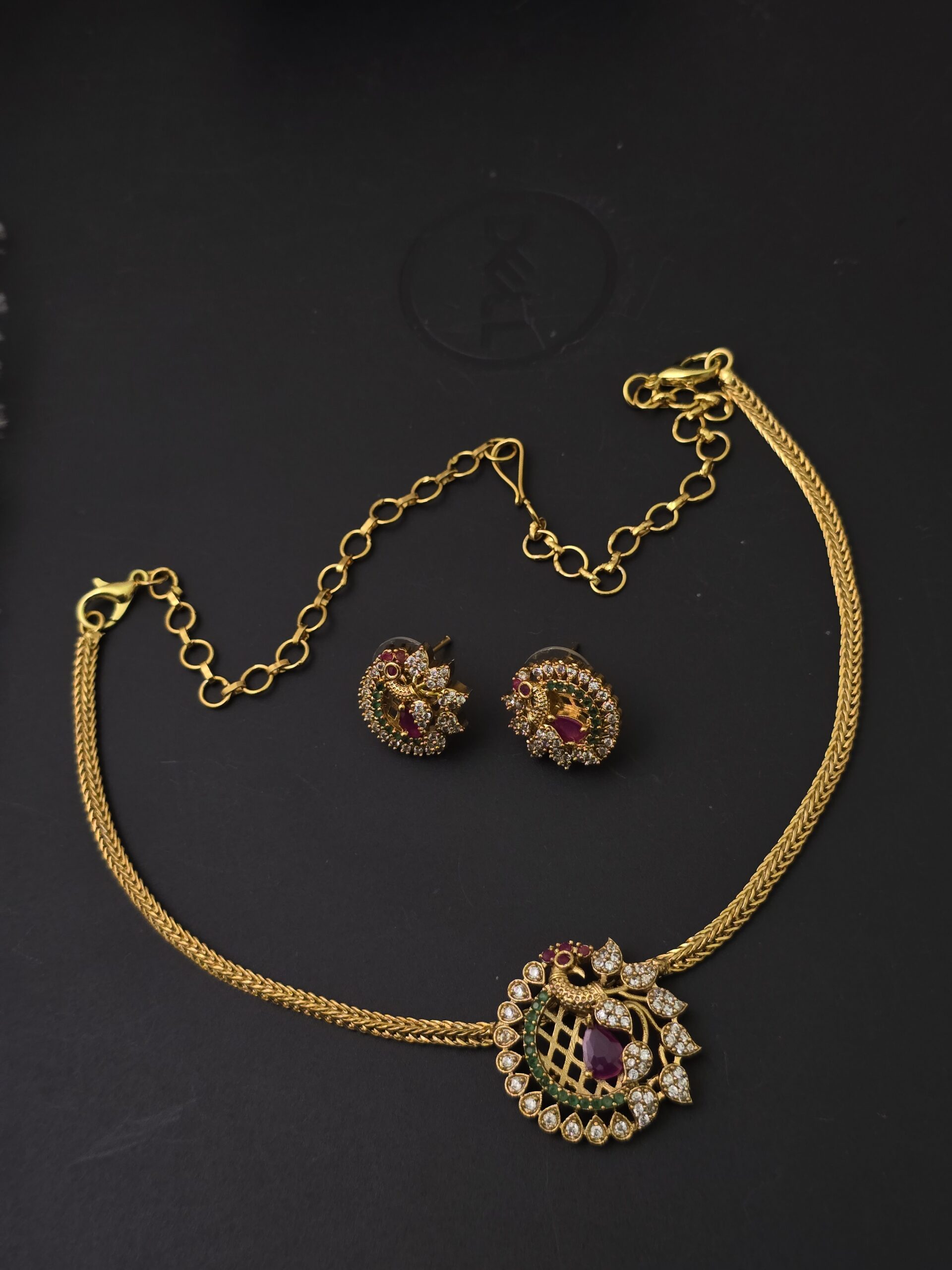 Be the first to review “Premium mat AD stone necklace with stud ”