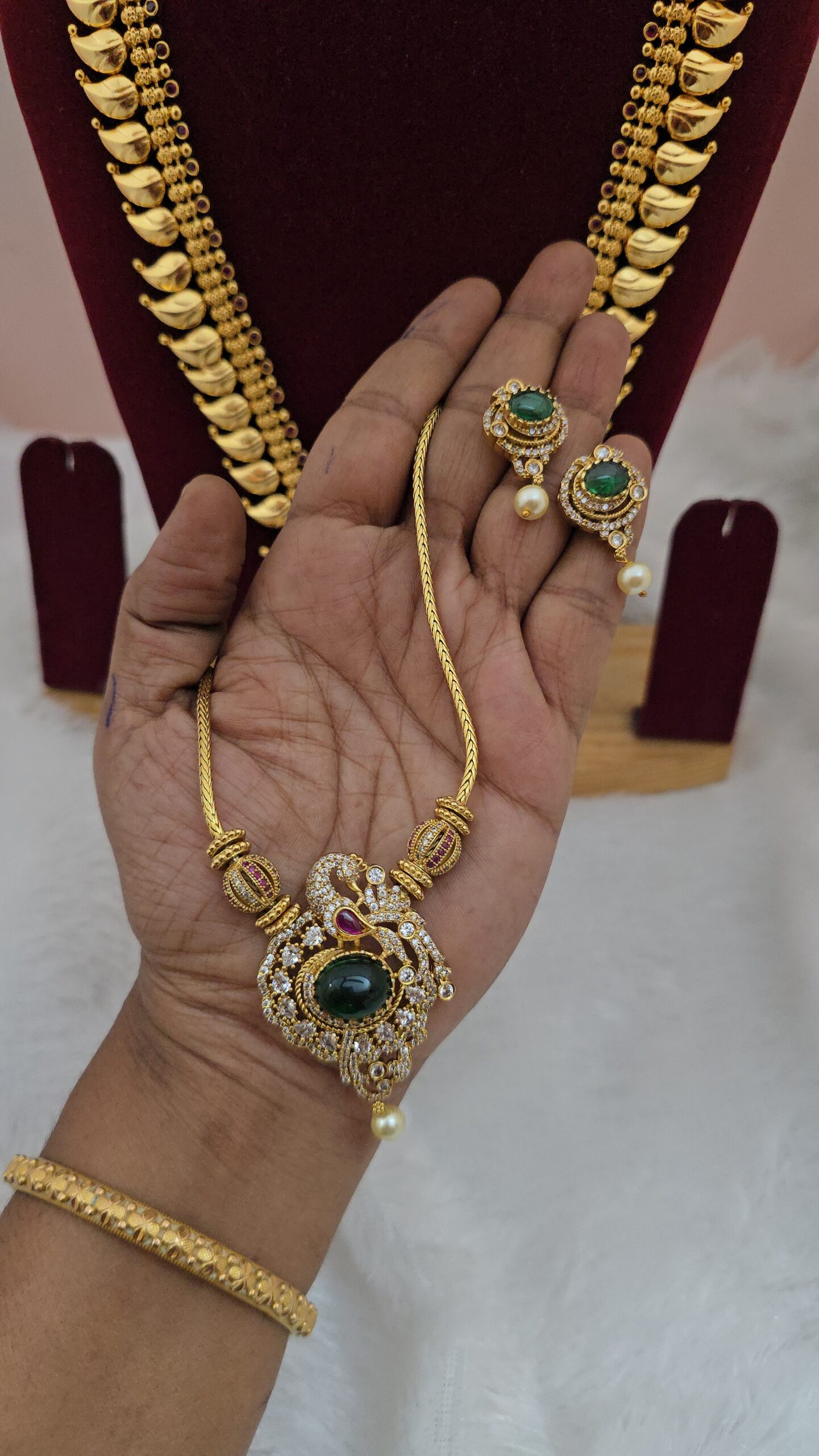 PACKAGE CONTENT – Premium mat ad stone peacock necklace with stud