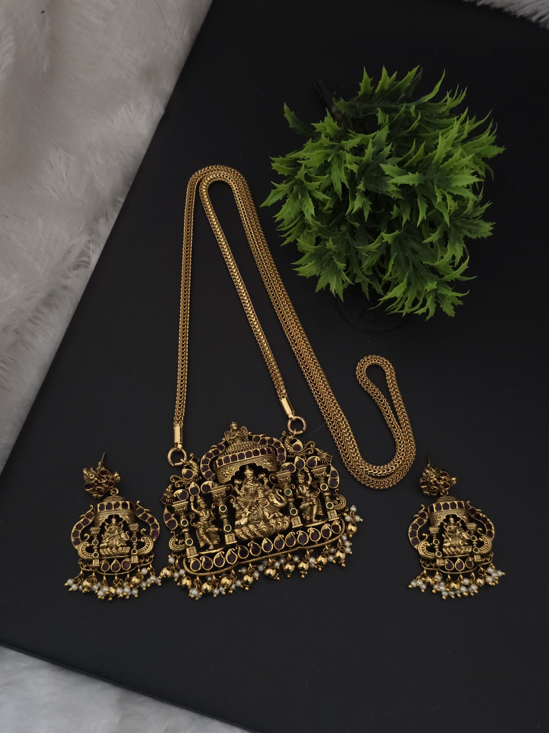 Be the first to review “premium matt 30 Inch lakshmi dollar chain with earings”