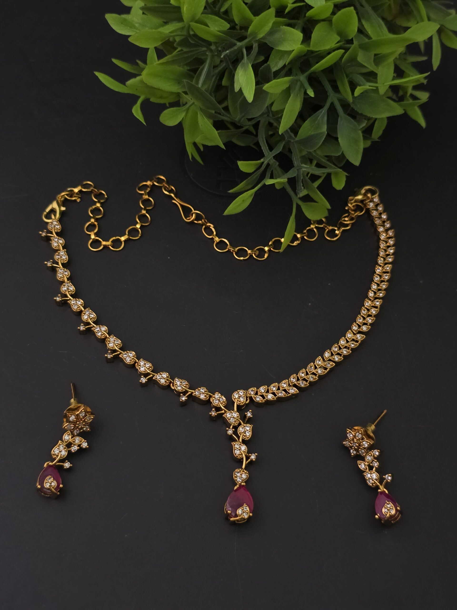 Be the first to review “ Premium matt AD stone necklace with stud ”