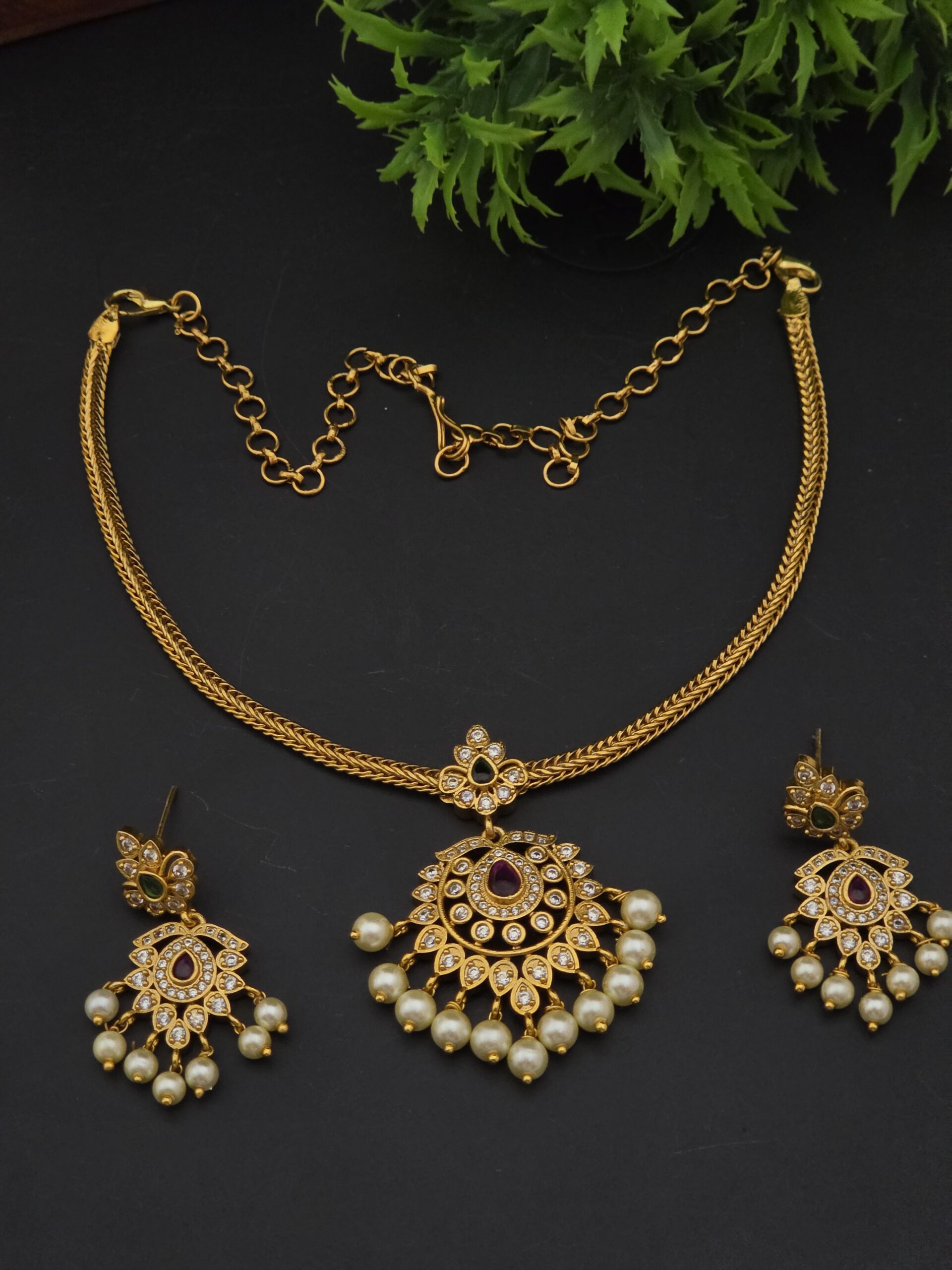 Be the first to review “Premium matt AD stone necklace with stud ”