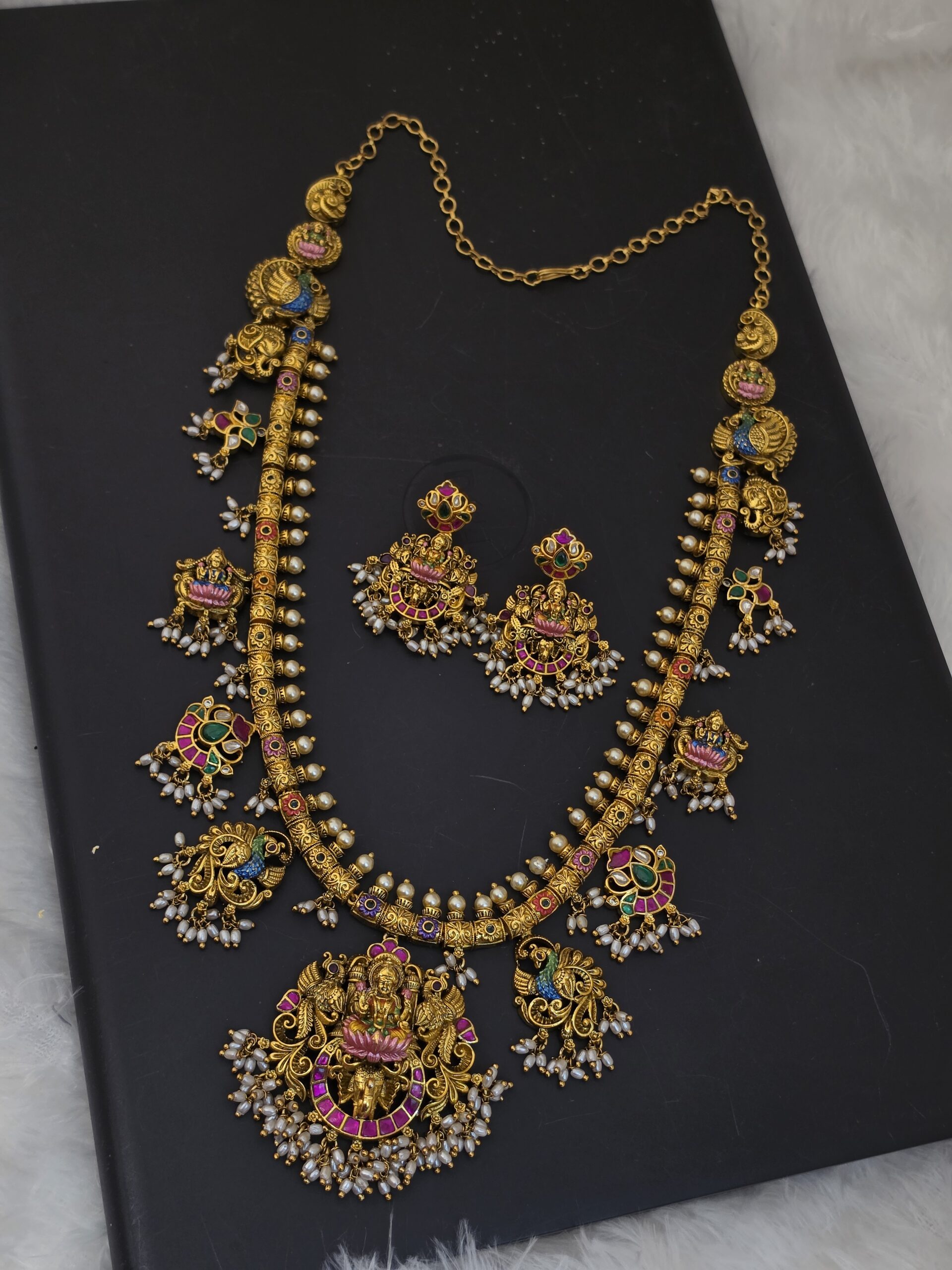 PACKAGE CONTENT – premium matt antique meenakari haram with earings