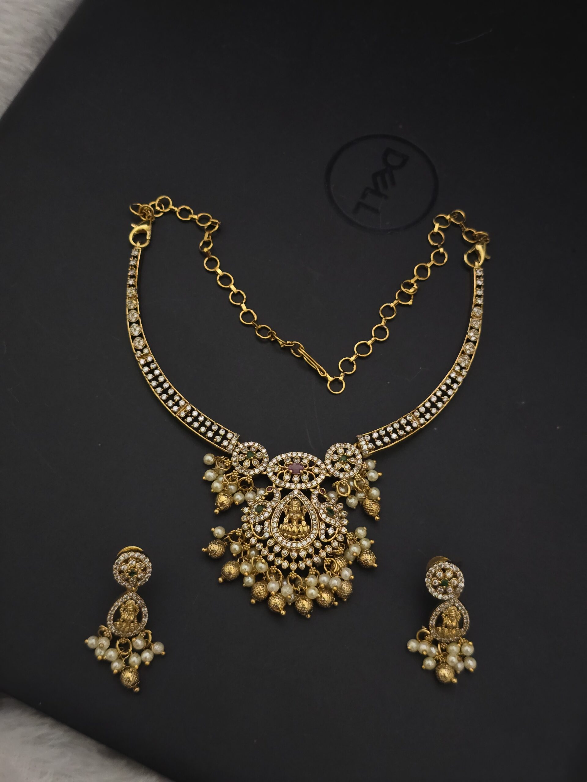 PACKAGE CONTENT- premium matt diamond replica lakshmi necklace with earings