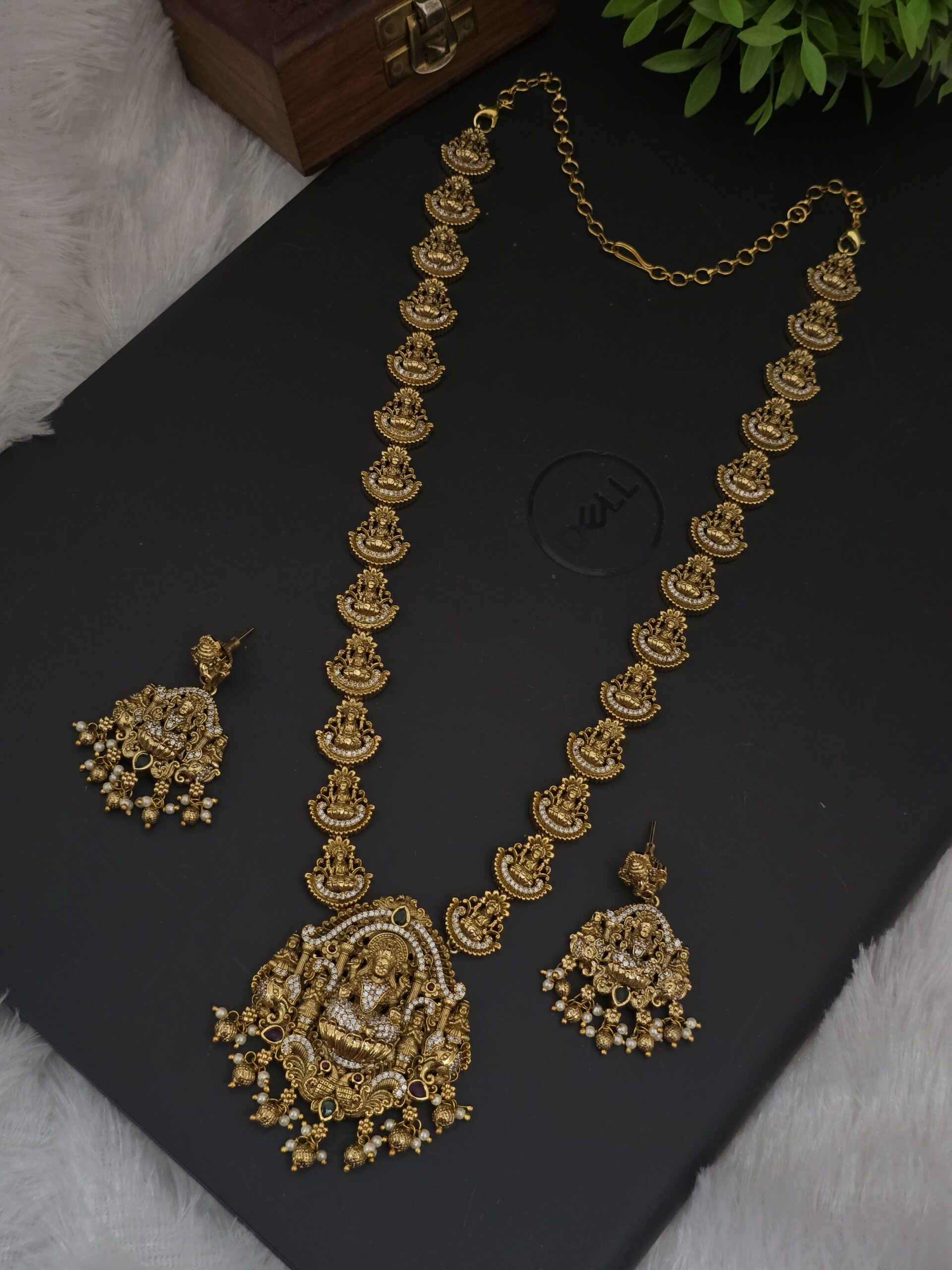 PACKAGE CONTENT- premium matt lakshmi long haram with earings
