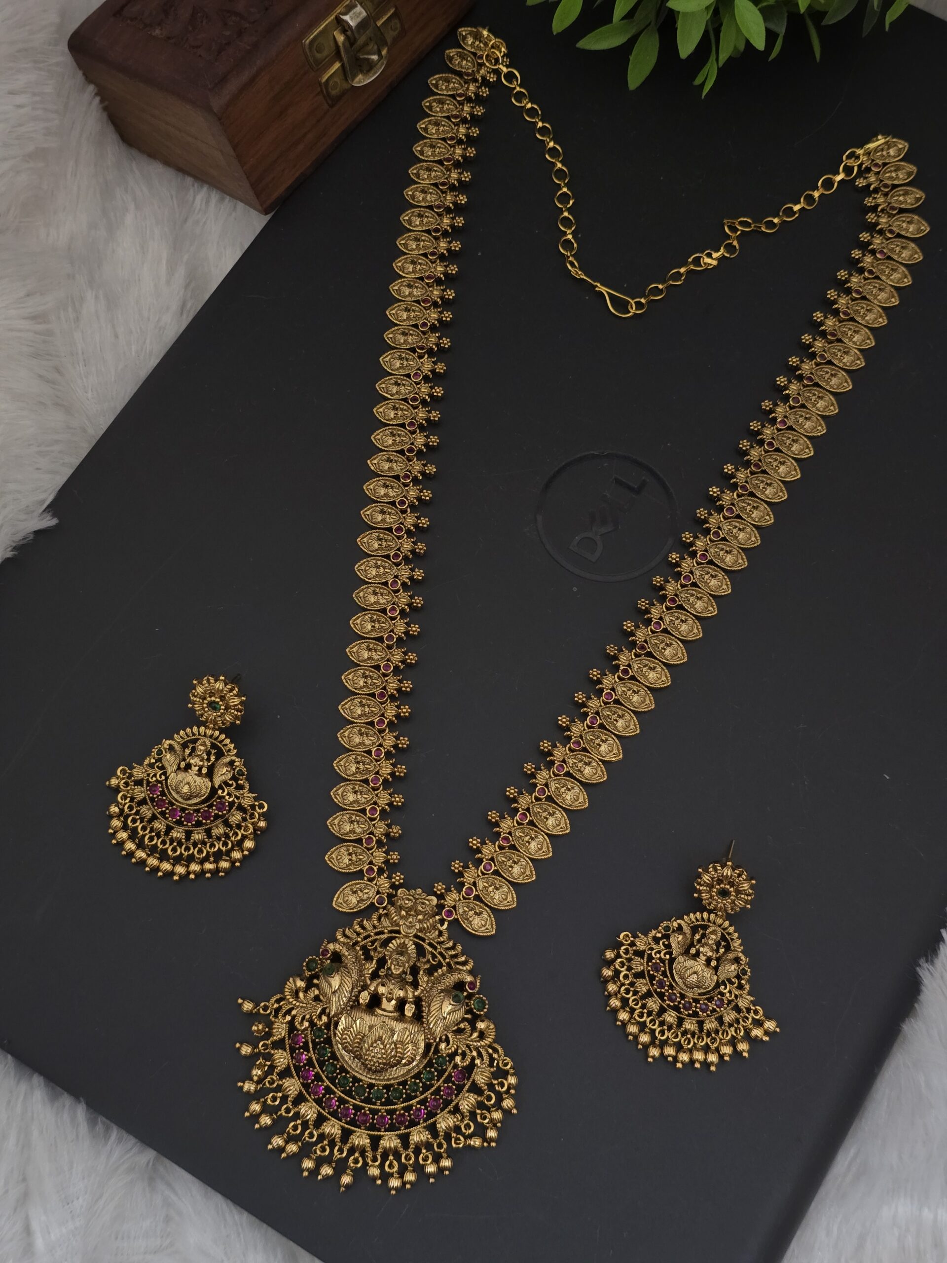 PACKAGE CONTENT- premium matt lakshmi long haram with earings