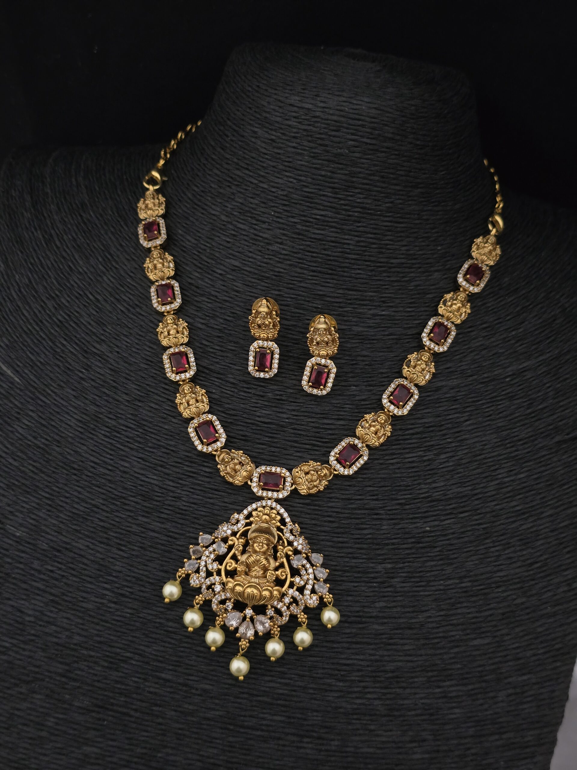 PACKAGE CONTENT – Premium matt lakshmi ruby stone necklace with earings