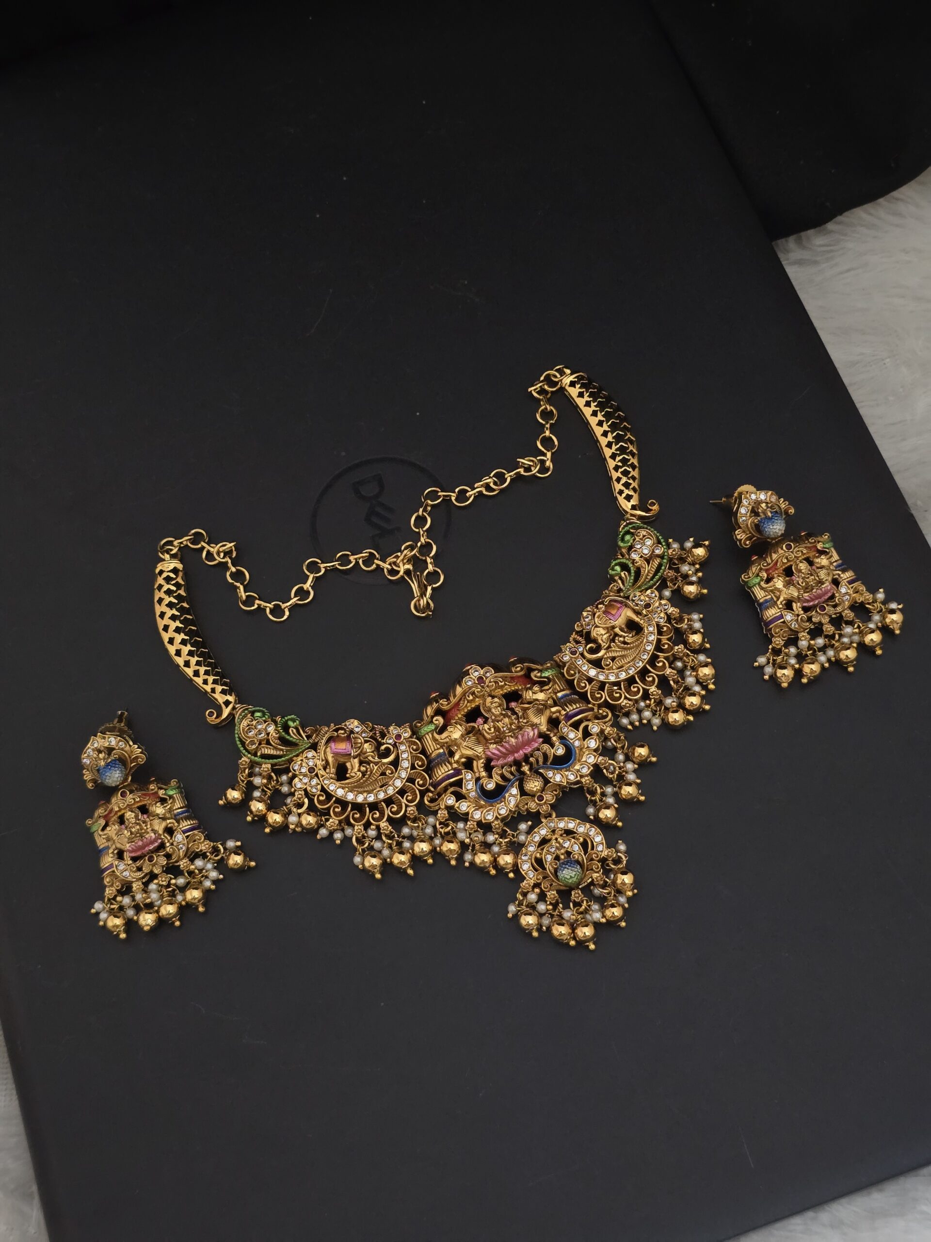 PACKAGE CONTENT – Premium matt meenakari necklace with mandapam pattern