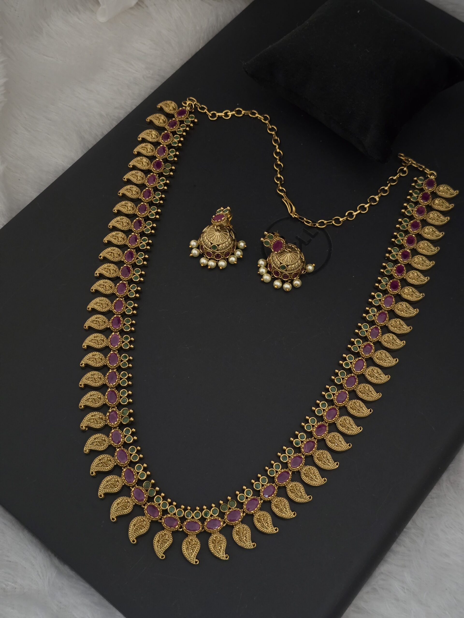 PACKAGE CONTENT – Premium matt ruby stone haram with jhumka