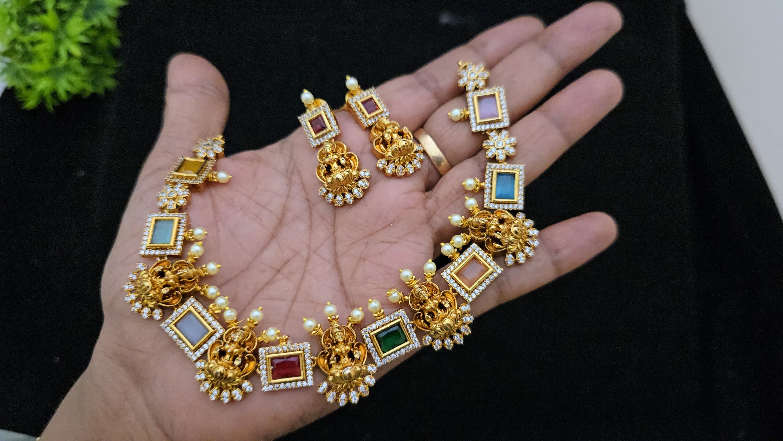 PACKAGE CONTENT – Premium quality navarathna antique necklace with stud